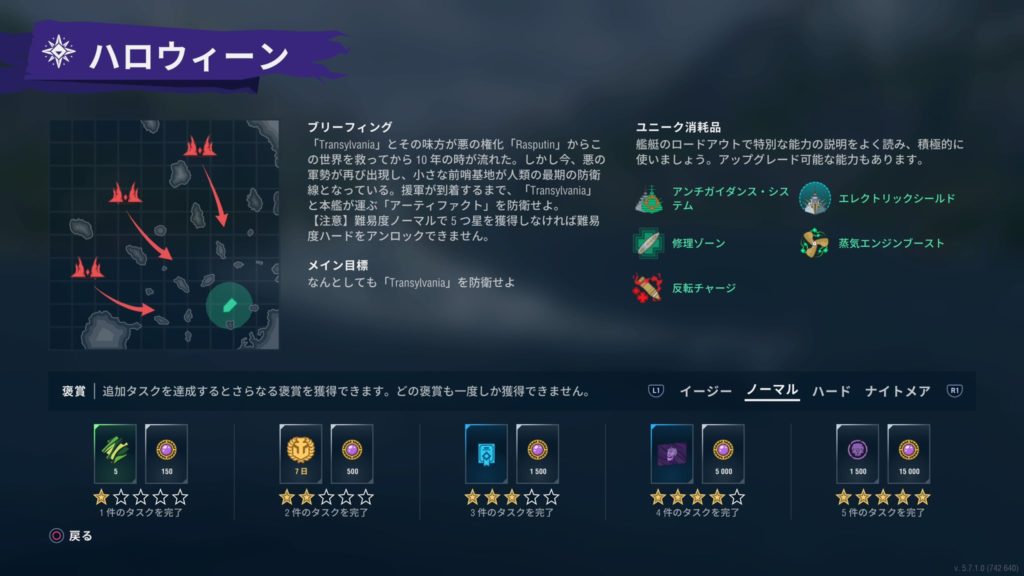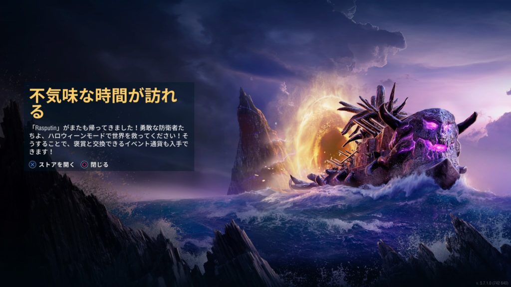 ハロウィンイベントの開始です! イージー・ノーマル・ハードと難易度が上がっていきます。ここまではそんなに難しくないけれど、問題は最後に待っているナイトメアの方ですね。勝てるかどうかは味方との連携次第です。