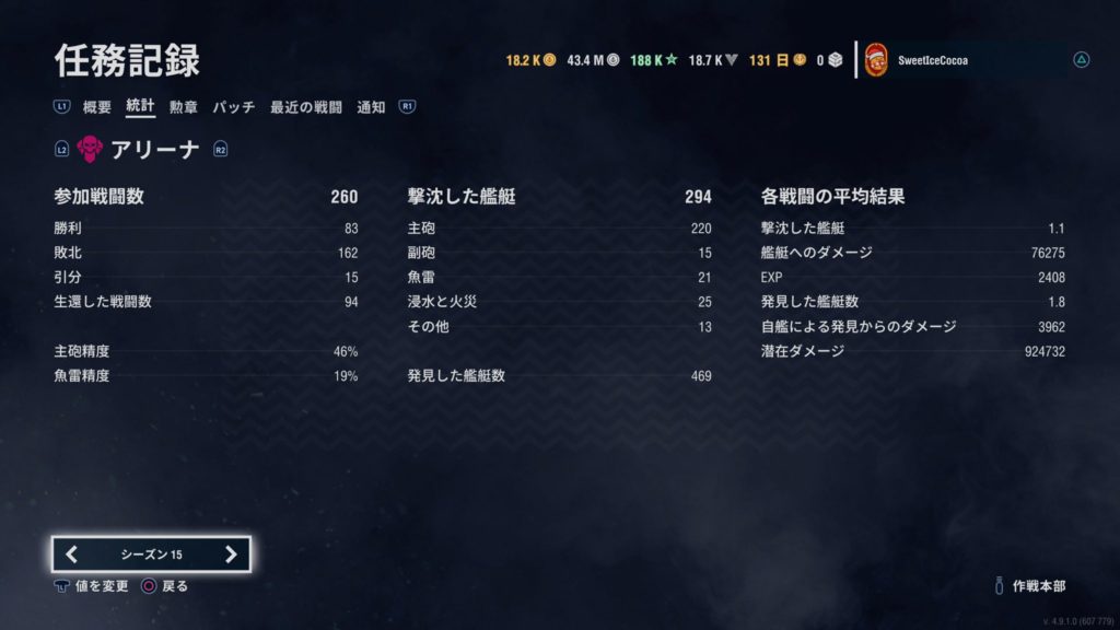年末年始はすべてをかなぐり捨てて、ひたすらアリーナ戦に没頭してました。シーズン15の僅か5日間だけで、260戦もの試合を戦い抜きました。分隊を組めない以上は数をこなすしかなかったということで、これは正直キツかったです。