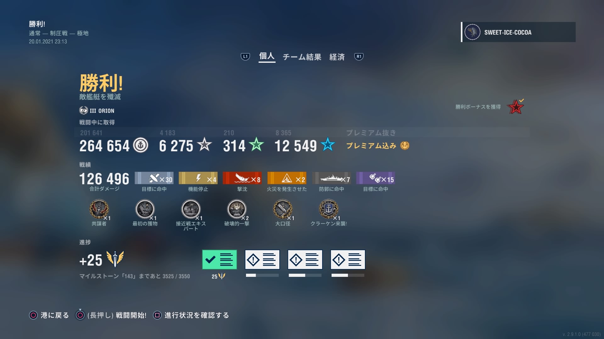 今回のランク戦は過酷だ。味方をアテにしていてはダメで、1人で5隻殺るくらいの覚悟で行かないと勝てない。「より個人技が試される」と公式がアナウンスしていたのはこういう事だったんだな。(ちなみに自分は1人で4隻沈めたのが最高記録でした)