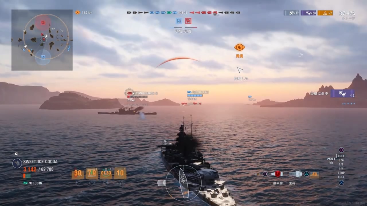 とあるランク戦。連続攻撃の成功でクイーンエリザベス艦長の「2隻同時に撃破よ!ピースオブケイク!」というめずらしいボイスを聞かせて頂きました!!