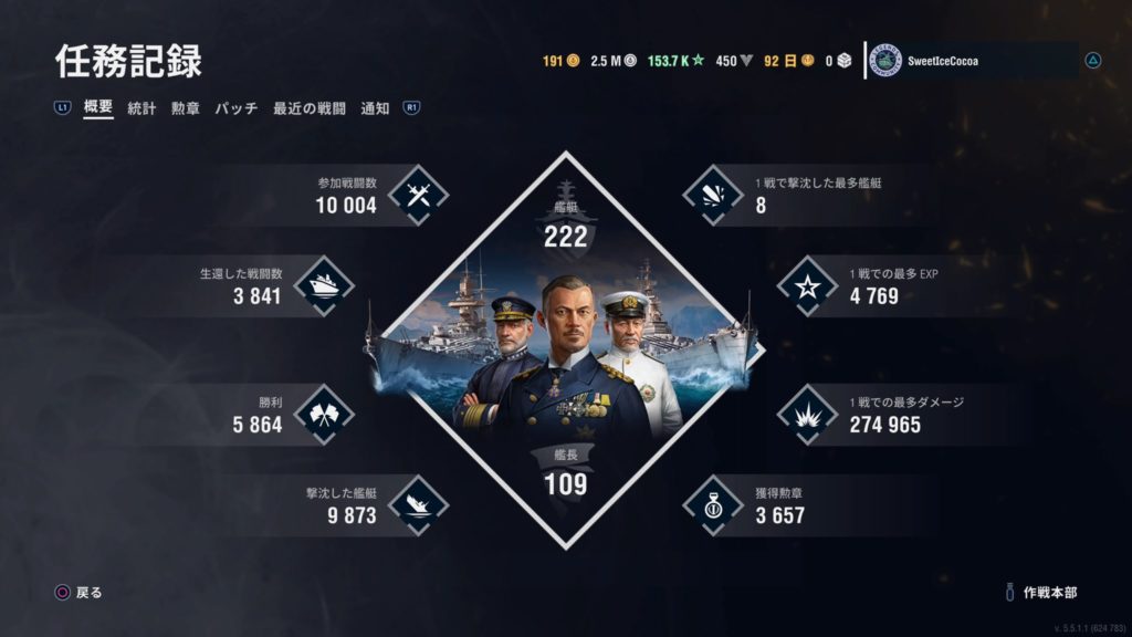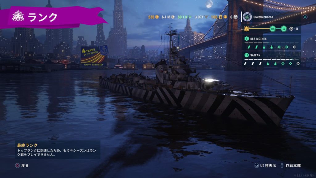ランク1到達! 戦艦使って沼ってたけど、駆逐艦に乗り替えたらすんなり行けました!
