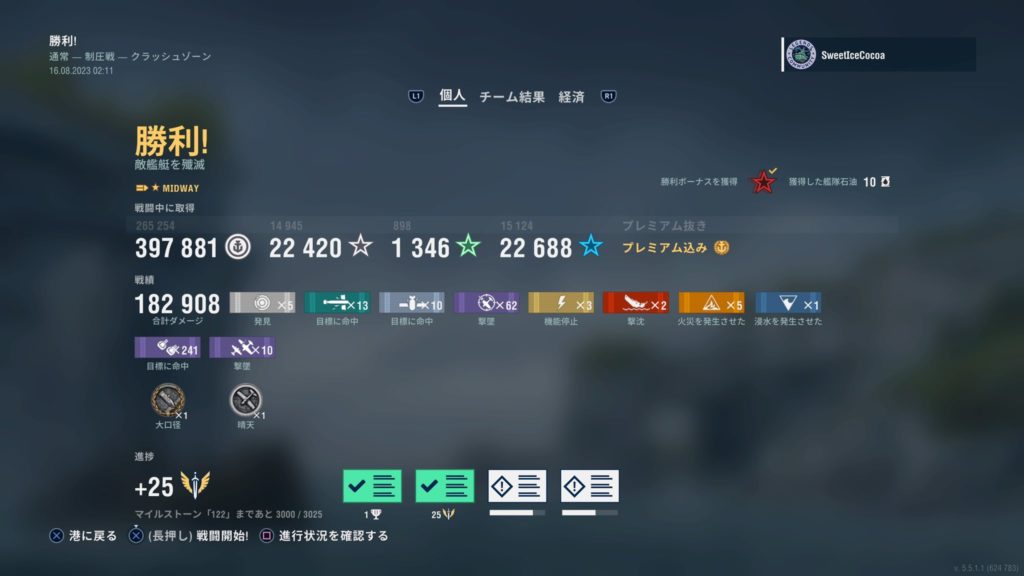 記念すべき10000戦を達成しました! でもスクショ撮り損ねてた。