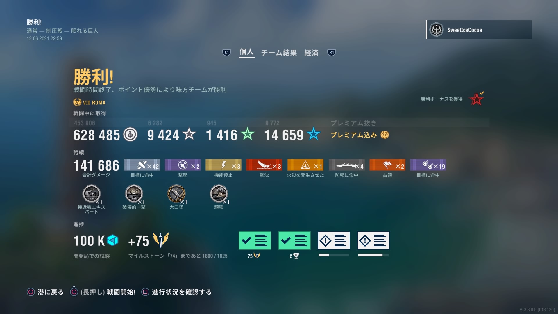 へっぽこ艦長な自分にしては、近年稀に見る大戦果を上げたぞい! 頑強とれたのはデカイ!