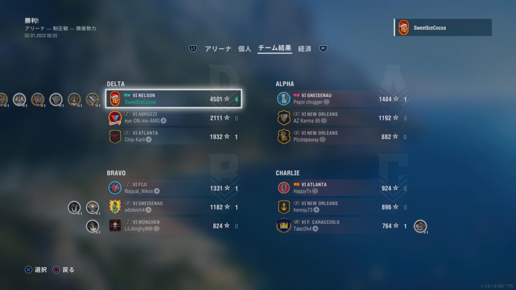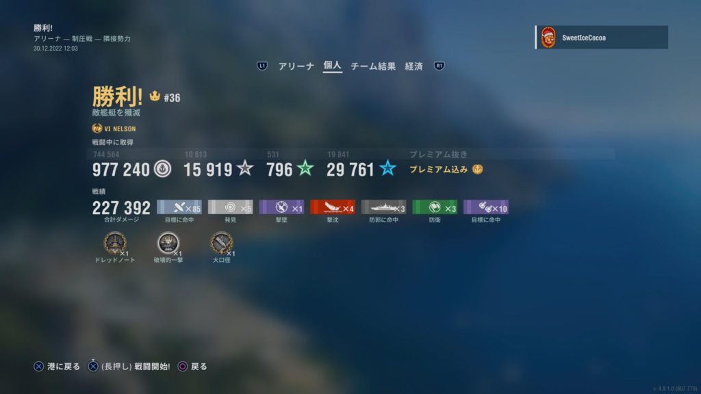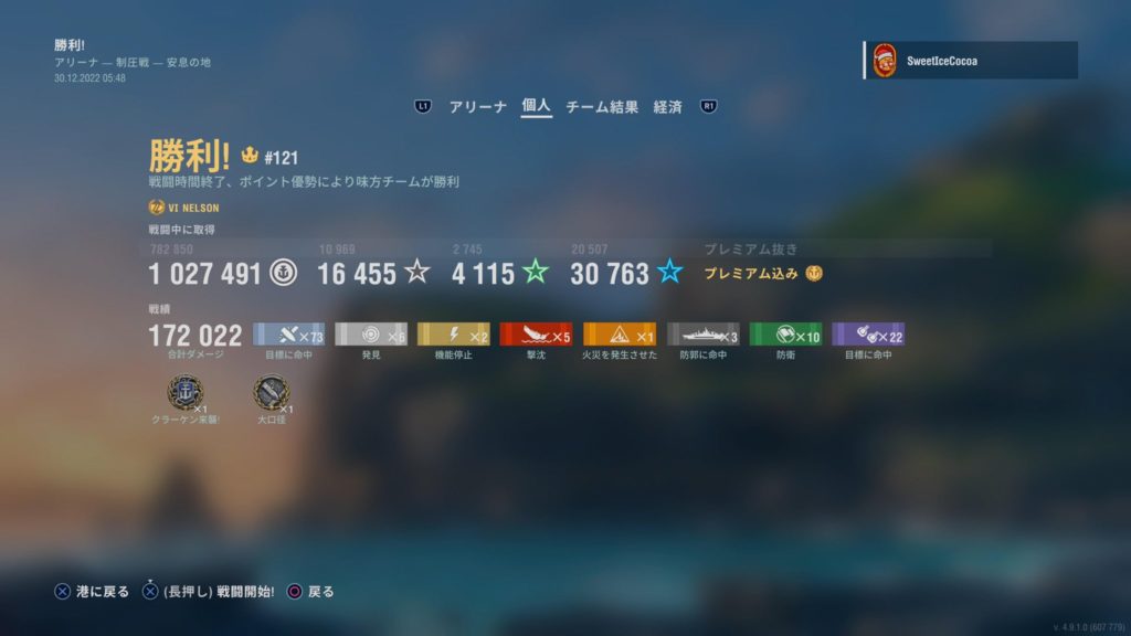 今回のアリーナ戦での一番の戦果です! 大量の勲章をゲット! 欲を言えば、もう1隻沈めてクラーケンまで行きたかったな〜。