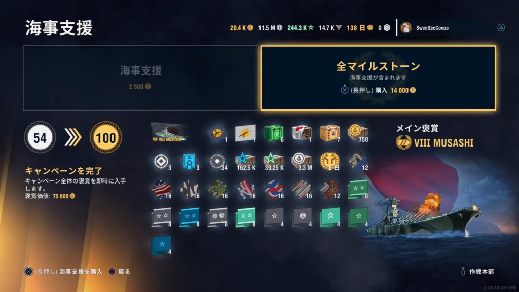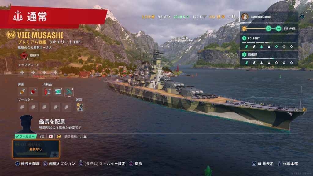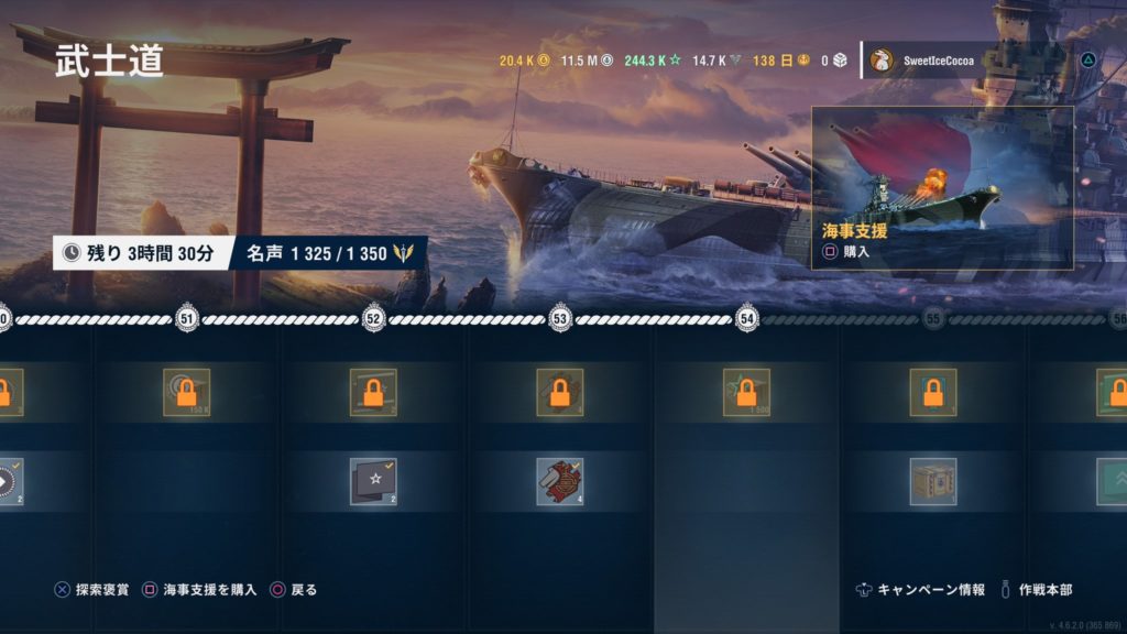 一戦してみた感想なのですが、船の動きが凄く重いッス。開幕後、いいポジション取りができず、目立った活躍もできないまま終わってしまいました。使いこなすには研究が必要かも。